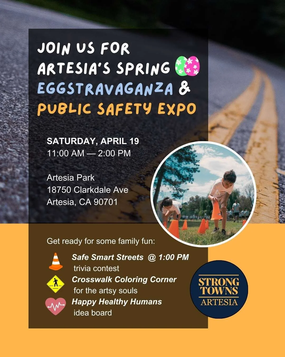 🎯 Safe Smart Streets Trivia – Test your knowledge & compete to win! 🏆 (1:00 PM) 🎨 Crosswalk Coloring Corner – For the little (or big) artists in your life! 🖍️ 💡 Happy Healthy Humans Idea Board – Share your vision for a safer, stronger Artesia! 🏙️